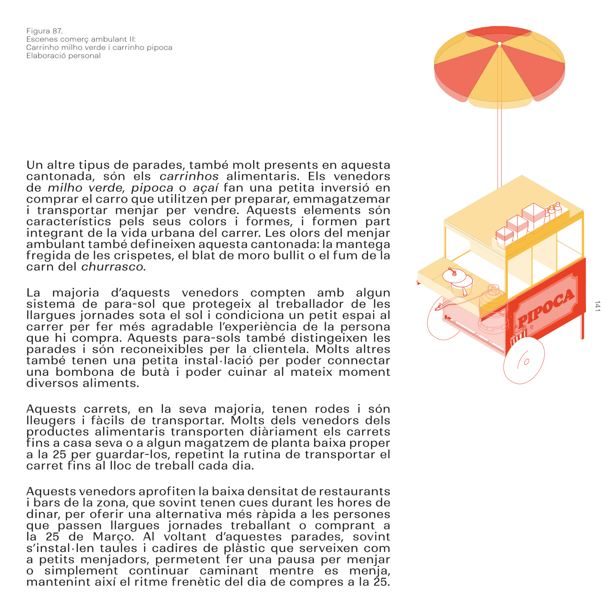 A partir d’exploracions de camp realitzades durant l’estada i de la revisió de fonts secundàries, el treball construeix una narrativa destinada a explorar la complexitat del carrer des de la perspectiva dels seus diversos establiments comercials, posant en relleu les característiques que el defineixen i el diferencien d’altres espais urbans. En primer lloc, s’analitza la relació entre el carrer comercial popular i l’estructura general de la ciutat, amb l’objectiu d’aportar una mirada més àmplia sobre el seu paper dins del context urbà de São Paulo.