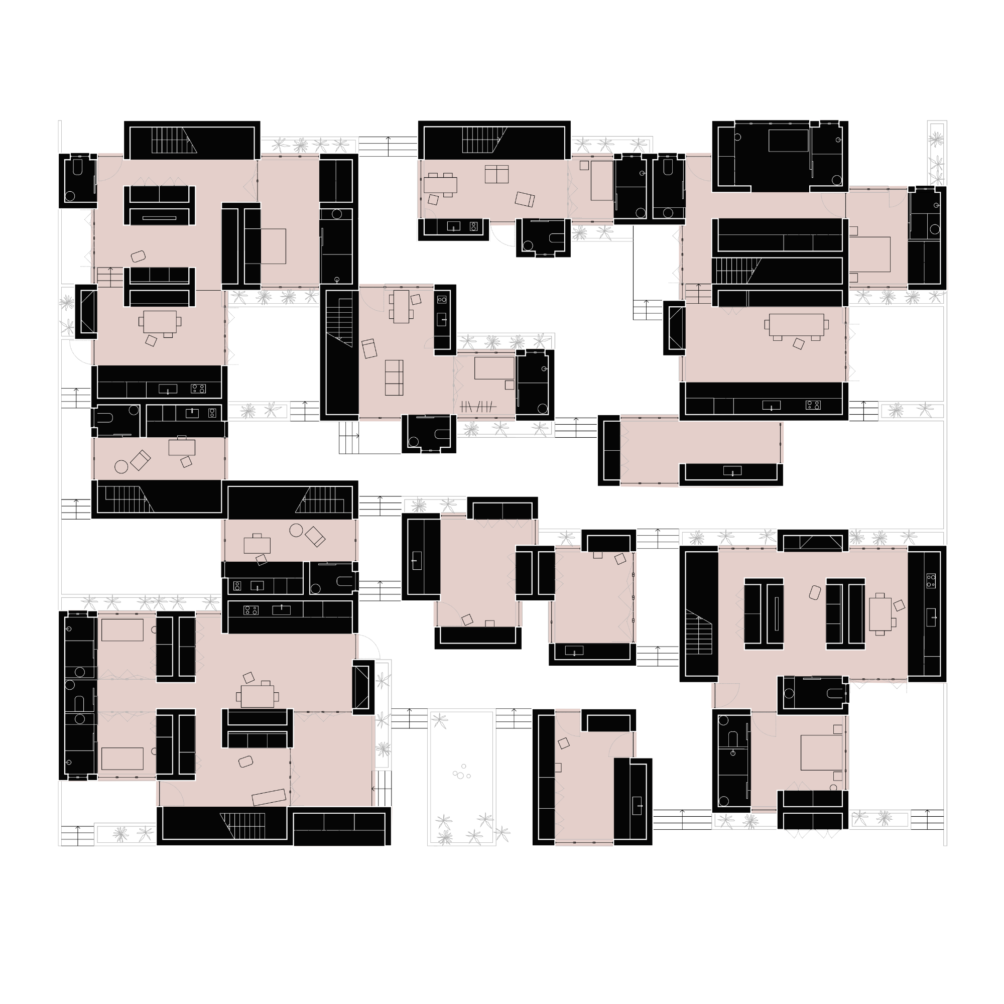 El projecte planteja l’agrupació de diferents unitats familiars dins d’una mateixa parcel·la, amb l’objectiu de fragmentar-la mitjançant una xarxa de recorreguts interns que generen una seqüència d’espais intermedis rics i flexibles. Aquesta estructura permet superar la lectura unitària de la parcel·la i afavoreix relacions diverses entre els habitatges, l’exterior i els espais compartits.