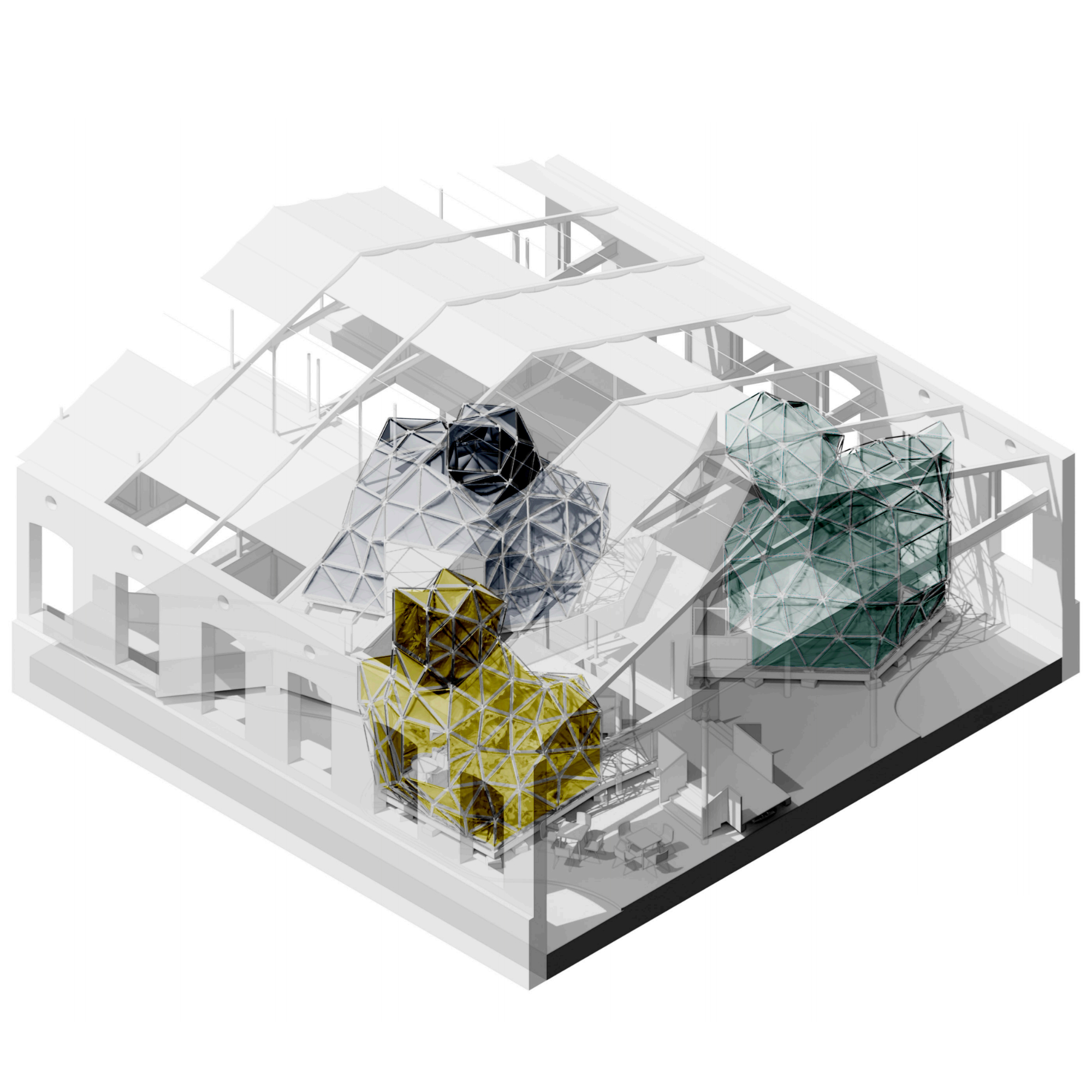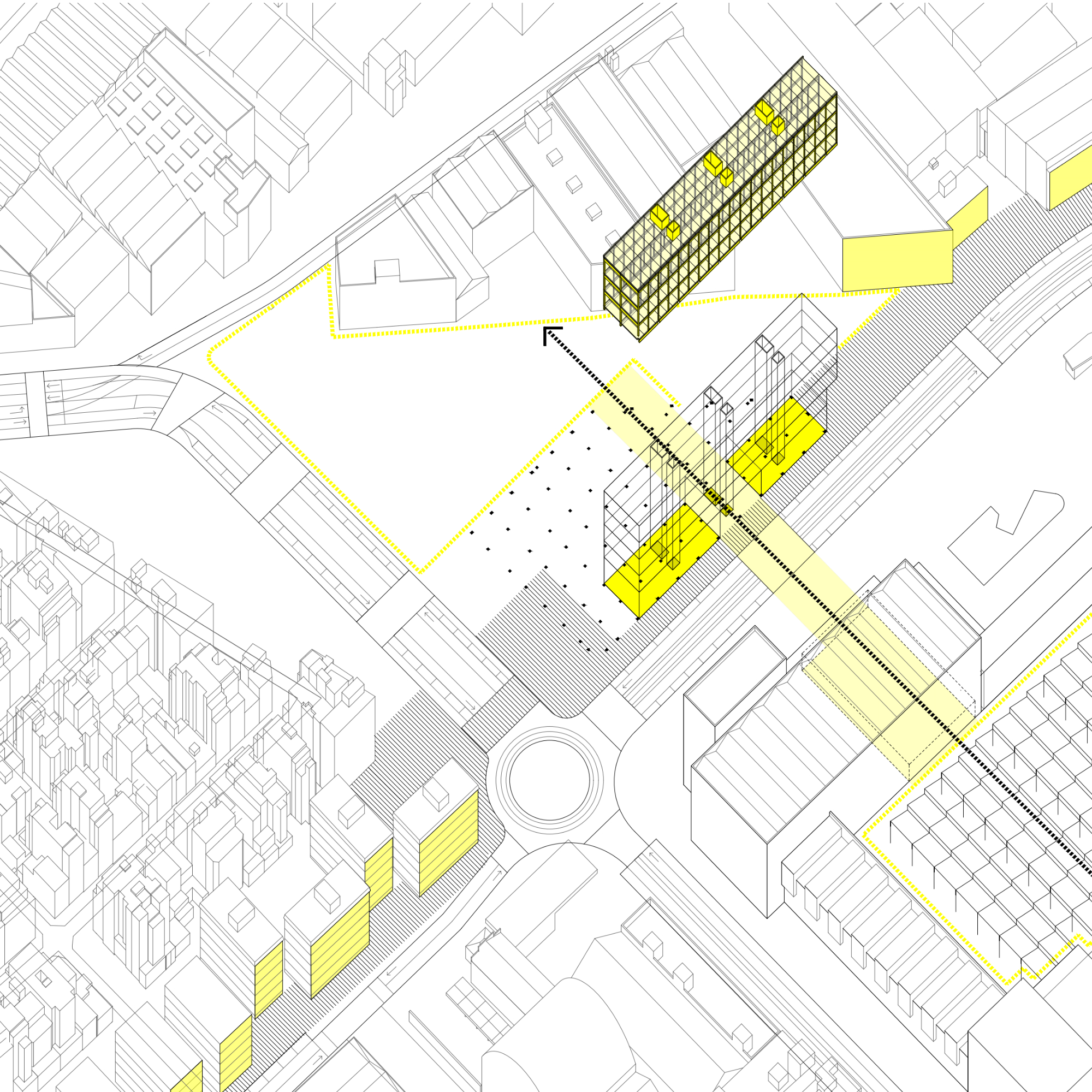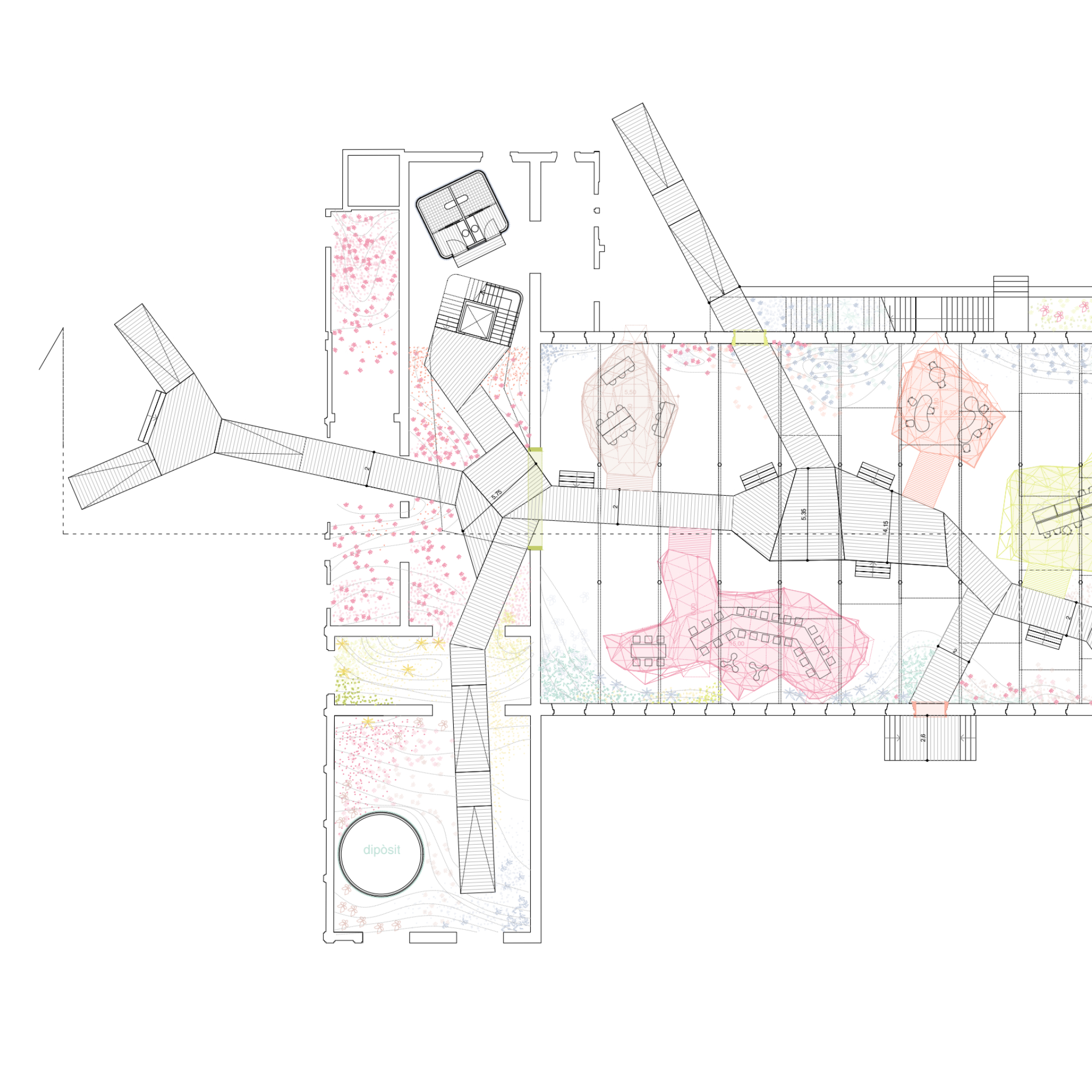 El projecte intervé en l’antiga fàbrica tèxtil de Can Trinxet a l’Hospitalet de Llobregat, un indret profundament vinculat al seu passat industrial. La proposta adopta una estratègia de «reciclatge pur», on tot el material que es treu de l’edifici —com la xapa de la coberta, el formigó del sòl o la ceràmica de la volta— es recicla i retorna en una nova forma, permetent que la fàbrica es transformi mantenint les seves capes històriques.