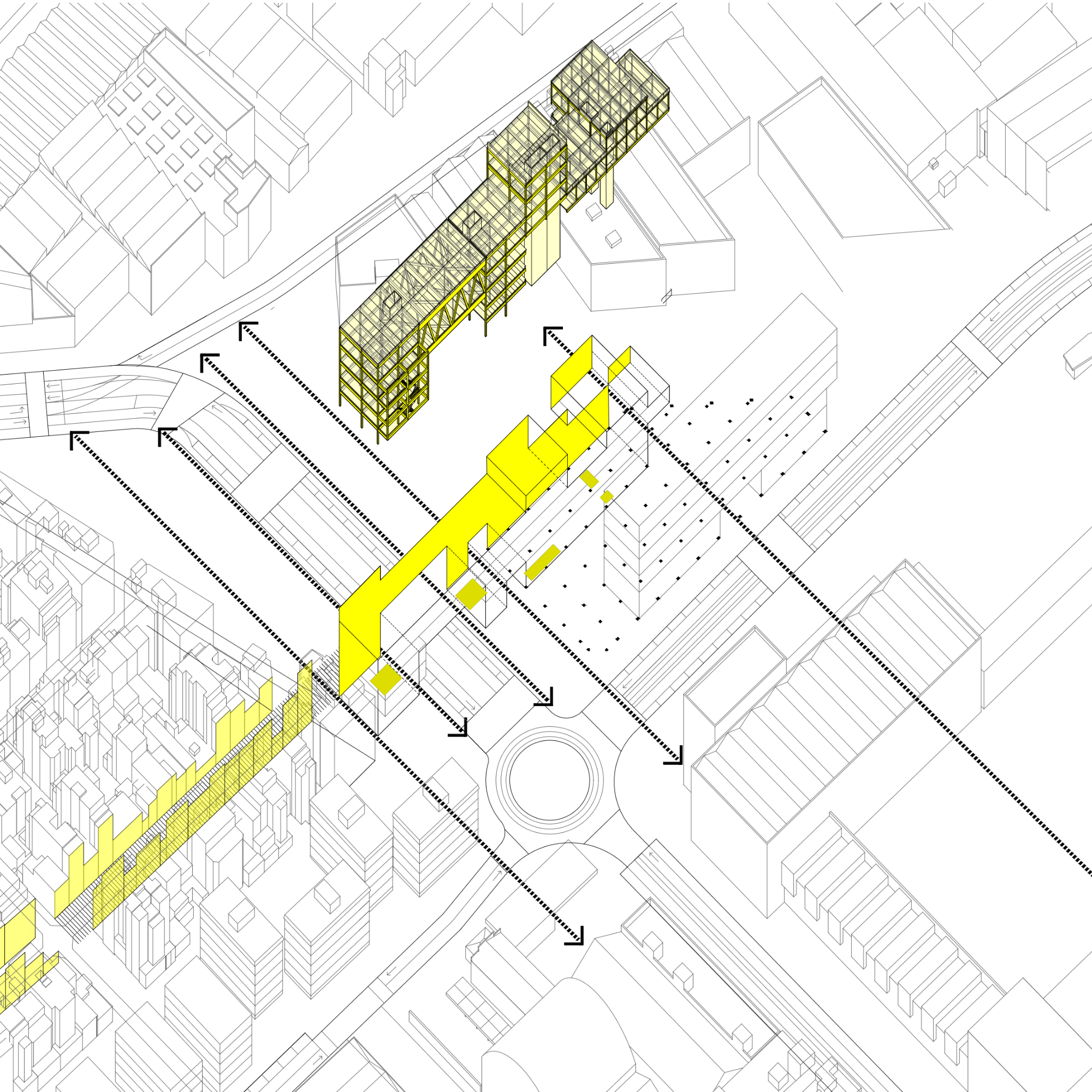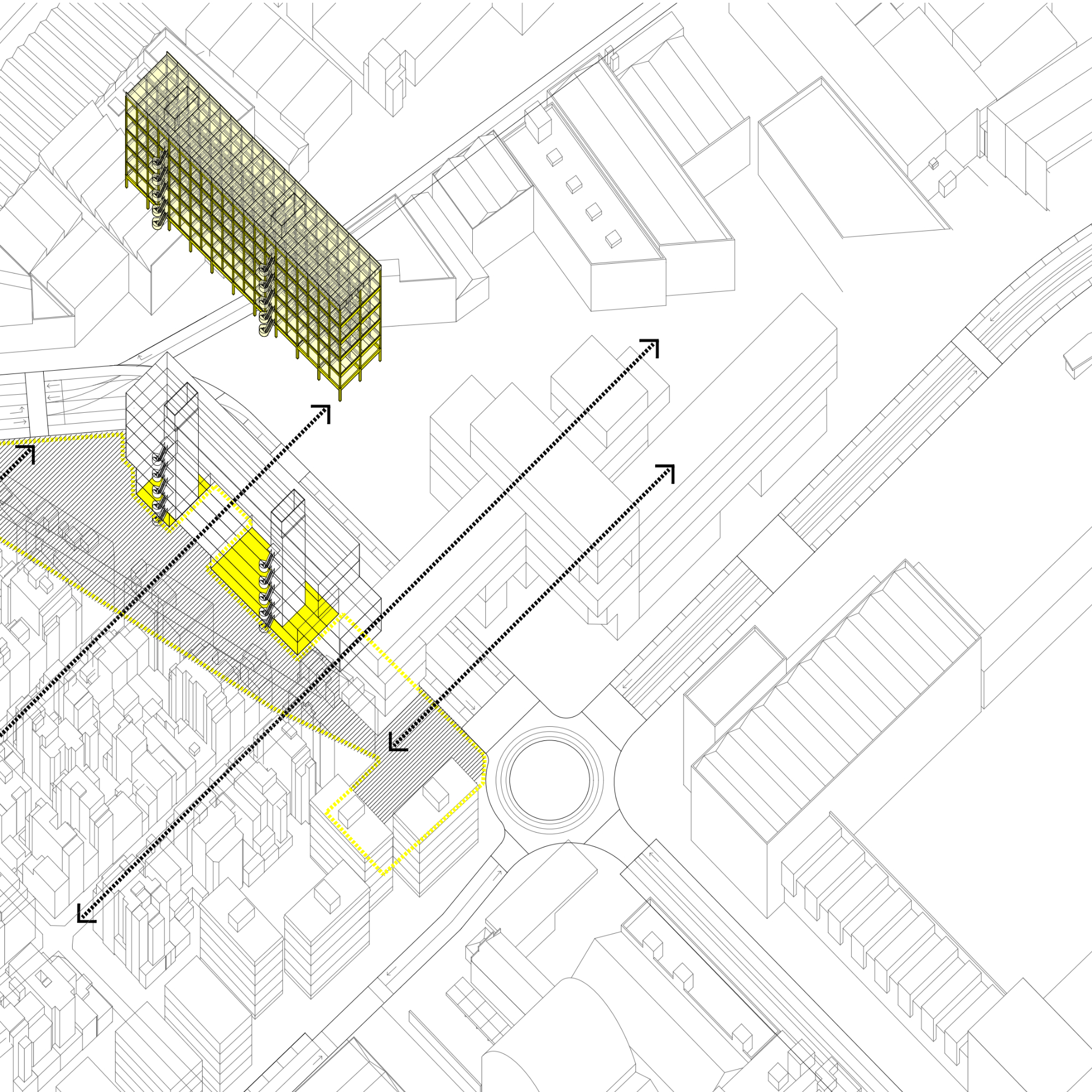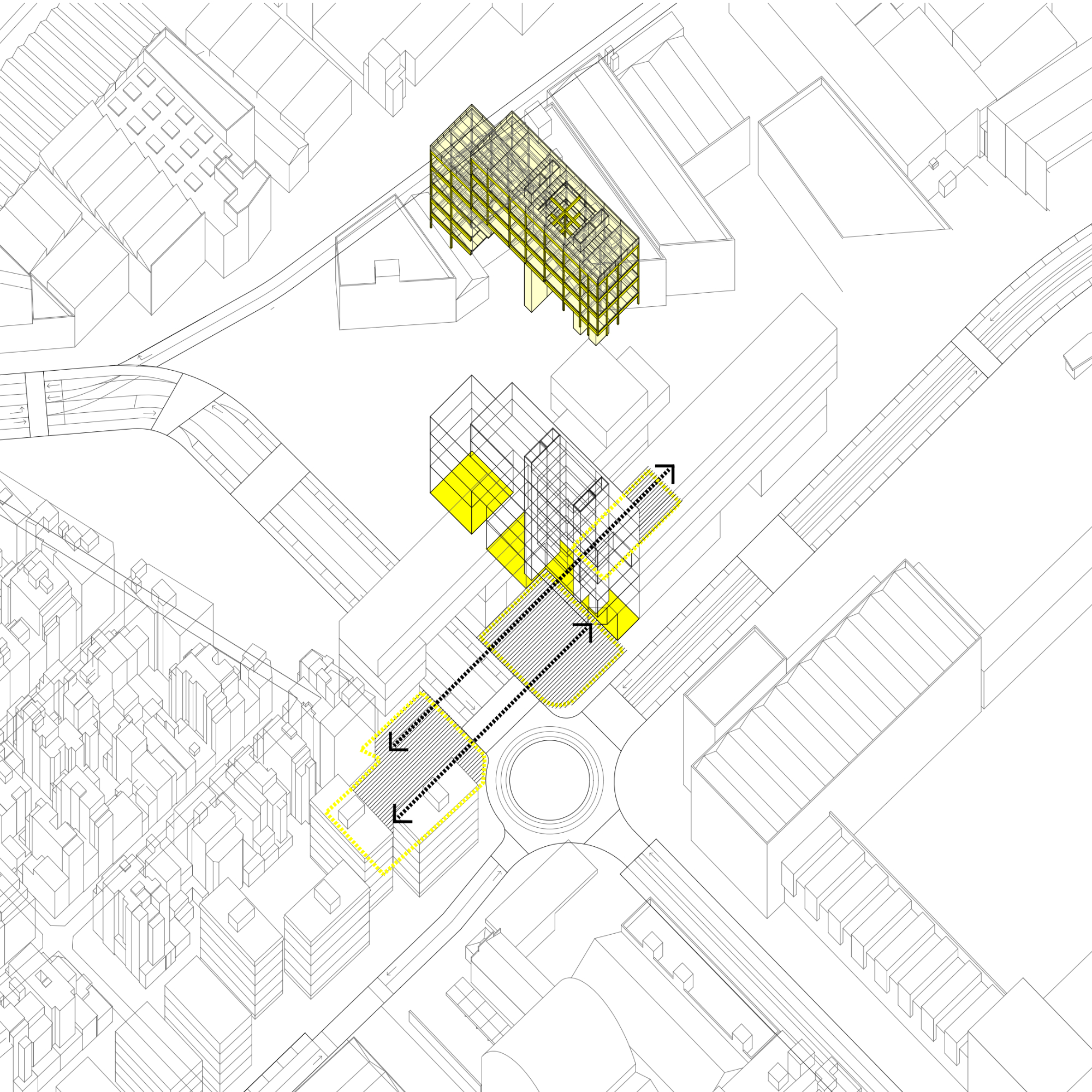 El projecte intervé en l’antiga fàbrica tèxtil de Can Trinxet a l’Hospitalet de Llobregat, un indret profundament vinculat al seu passat industrial. La proposta adopta una estratègia de «reciclatge pur», on tot el material que es treu de l’edifici —com la xapa de la coberta, el formigó del sòl o la ceràmica de la volta— es recicla i retorna en una nova forma, permetent que la fàbrica es transformi mantenint les seves capes històriques.